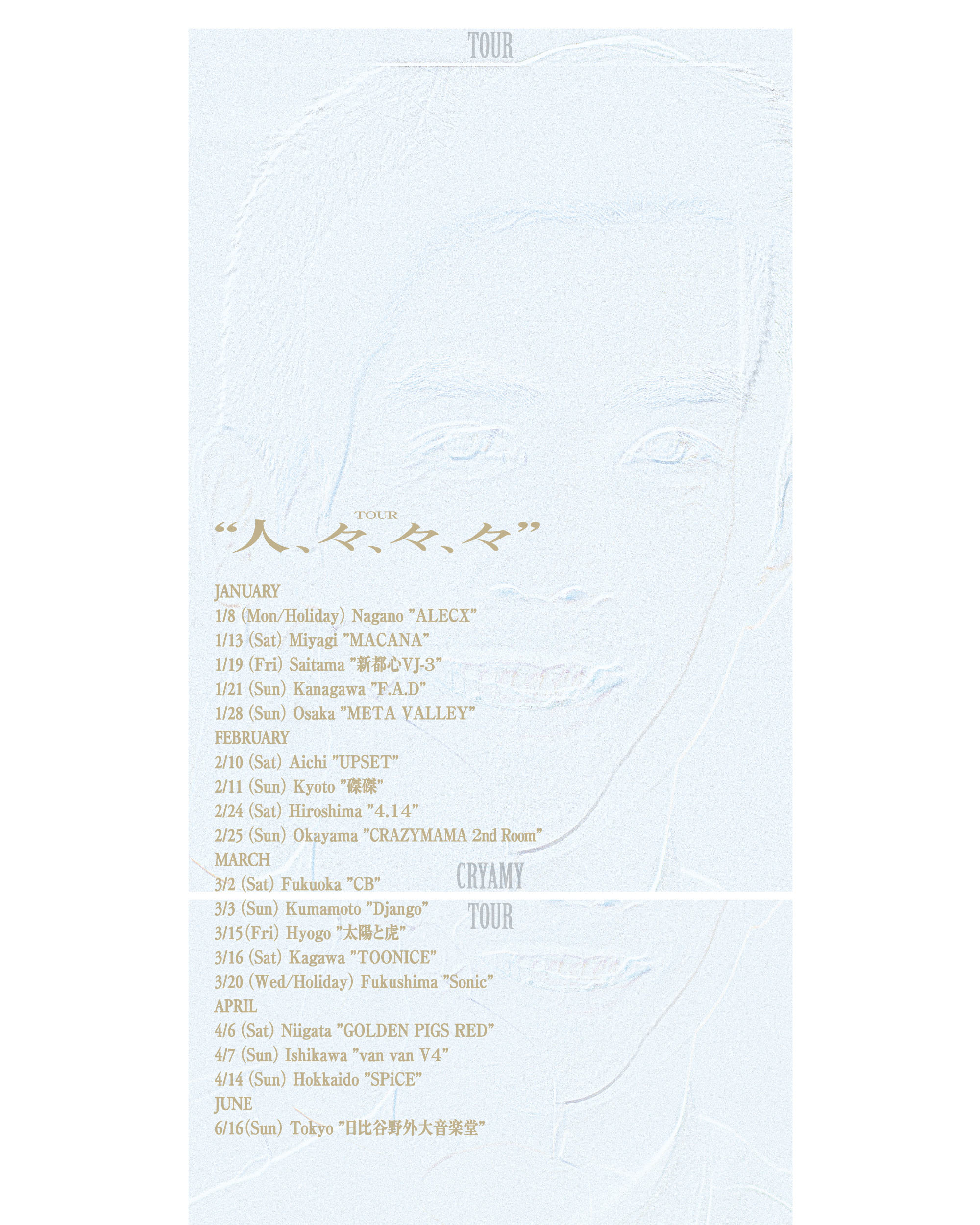 CRYAMY is a four-piece rock band from Japan. This is the visual for their 2024 nationwide tour.