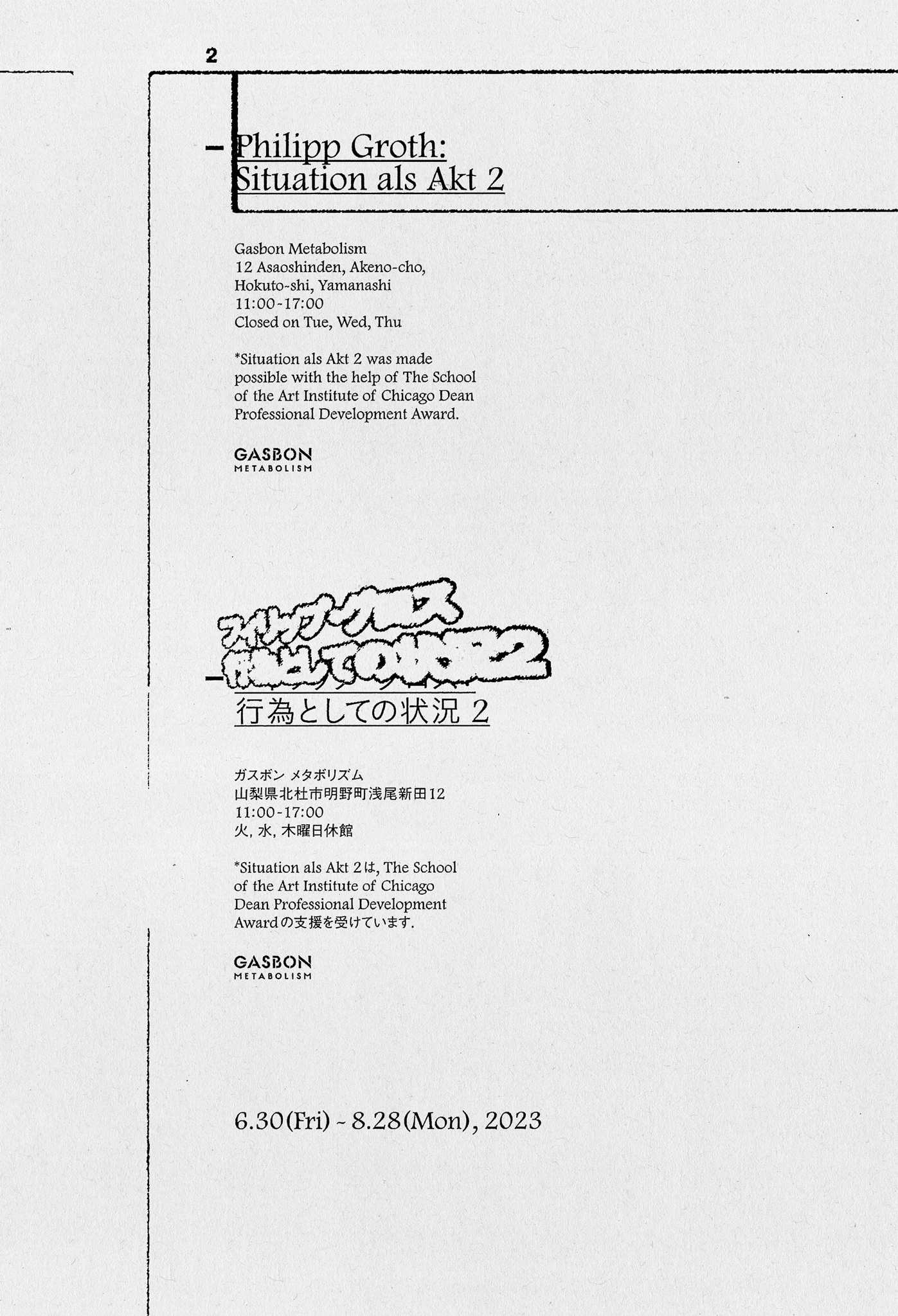 The visual for Situation als Akt 2 / 行為としての状況 2, a solo exhibition by German sculptor Philipp Groth held at GASBON METABOLISM.