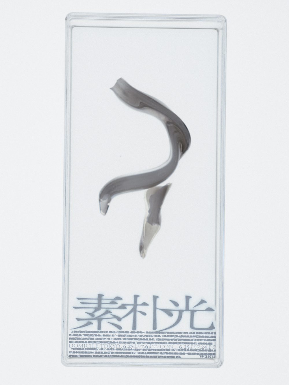 A physical invitation for Waku’s solo exhibition, presenting new works that signal a fresh direction in his ongoing exploration of neon light.